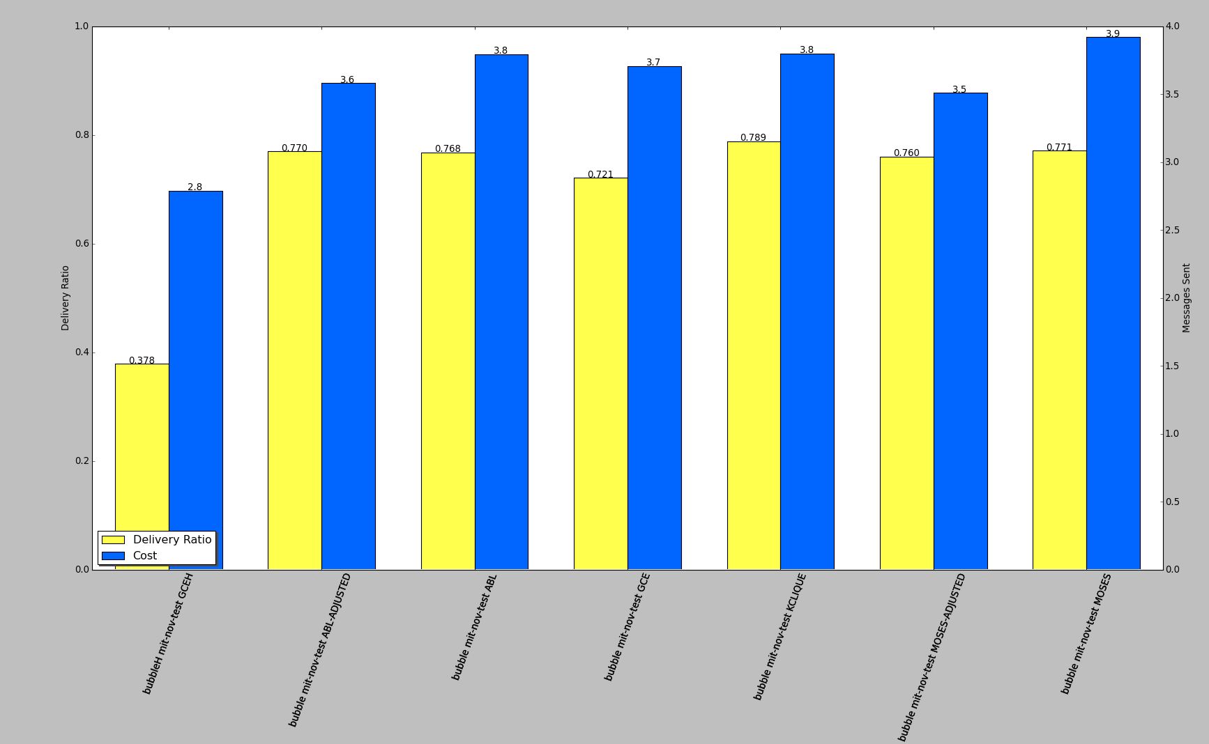 The combination of these metrics, gives us rich information to provide to a routing scheme, for example, it may be possible to adapt CAR [7] to use these metrics in it’s calculations, or a hybrid approach to BubbleRAP [2], where the global and/or local rank are based on these metrics. We may also want to devise our own scheme for routing based on this specific knowledge, however there are a large number of schemes already proposed, and it would seem sensible to improve an existing scheme, rather than create yet another one.