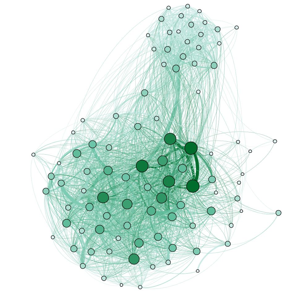InfoCom 2006 edges removed where connected time less than 2.5 hours – (min = 1000ms max = 46 hours). infocom2005 gephi file.